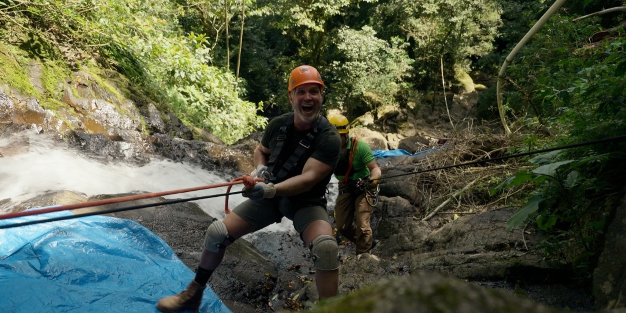 | 17h00 | Sortez-moi d'ici!... mais pas tout de suite | Philippe organise une randonnée en sol volcanique. Une ancienne célèbre campeuse se joint au duo et ils entreprennent de descendre une chute en rappel. |  |