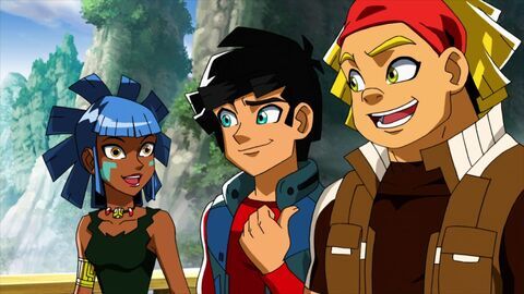 | 07h45 | Redakai, les conquérants du Kairu | Alors que les membres de l'équipe Stax flânent après une mission, ils tombent sur les Battacor en pleine partie de Spaceball. Ils apprennent que c'est pour leur compétitivité et leur force que Lokar les a choisis. Soudain, une projection astrale de Maître Baoddai apparaît et annonce aux héros qu'un dépôt de Kairu a été repéré en Norvège. Malheureusement, les E-Teens entendent tout et lancent un défi à l'équipe Stax. |  |