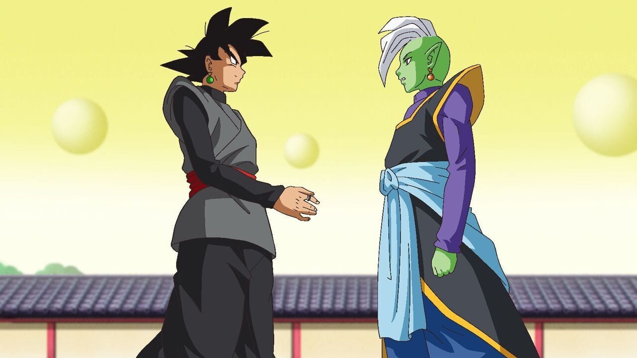 | 03h11 | Dragon Ball Super | Les forces de Trunks faiblissent, d'autant plus qu'il intervient pour sauver Mai après qu'elle a tenté de tirer sur Black. De leur côté, Goku, Vegeta et Bulma arrivent avec la machine à voyager dans le temps, bien décidés à enfermer Zamasu/Black dans une urne. Manque de chance, la machine temporelle est détruite par Zamasu/Black, et l'urne, restée dedans, finit en morceaux... |  |